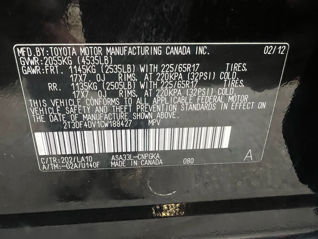 Vehicle Inquiry for 2012 Toyota RAV4 Limited I4 4WD