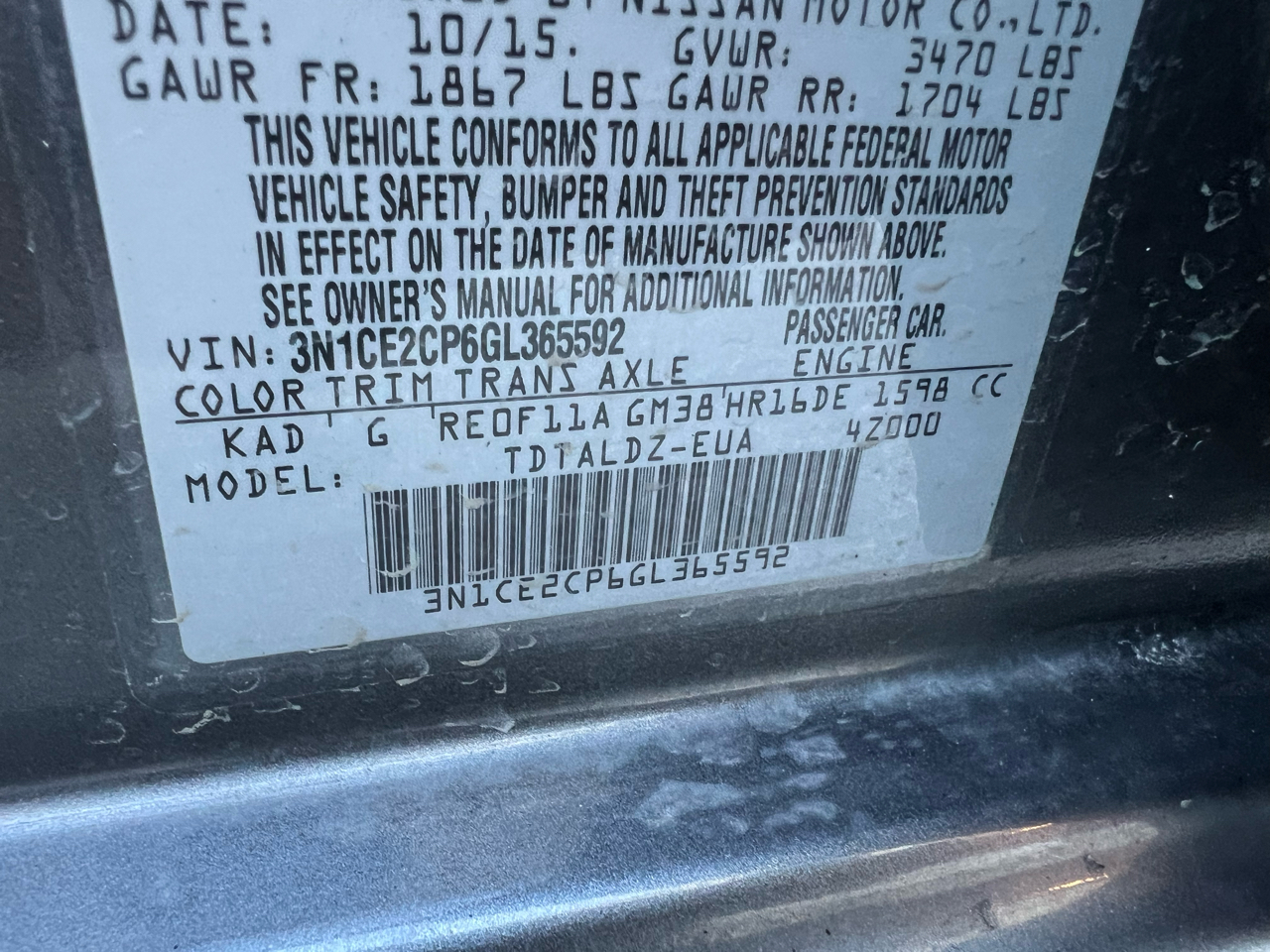 Vehicle Inquiry for 2016 Nissan Versa Note SL